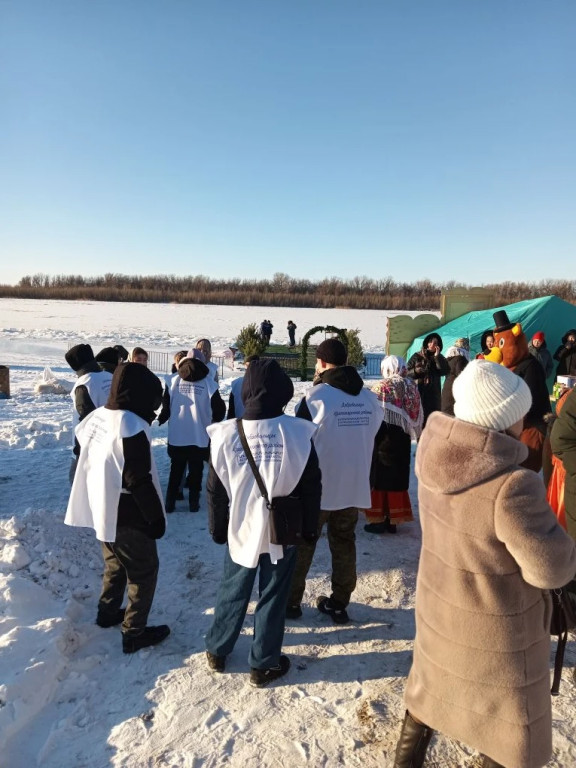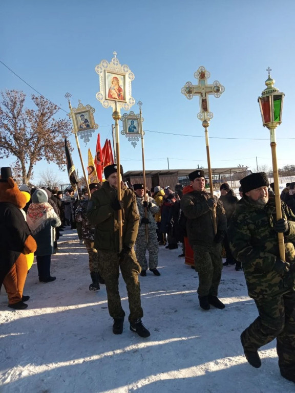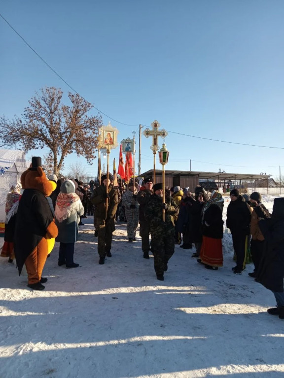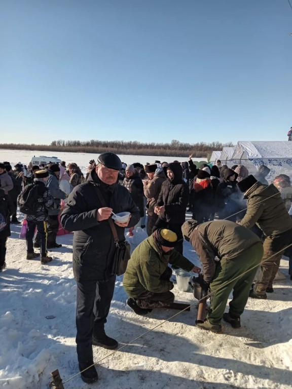 19 января Крещение Господне за многие годы выдался на редкость снежным и морозным. Температура воздуха минус 19 градусов, однако многих жителей Красноярского округа это не удержало, они прошли крестным ходом от храма Христа Спасителя до Иордани на реке Бузан после праздничной литургии. Среди них было и 3 члена Красноярской МО ВОС. Купель, для желающих окунуться, была подготовлена заранее, с организацией горячего питания. На протяжении всего мероприятия дежурили спасатели, специалисты скорой помощи. Казаки приготовили на костре настоящую рыбацкую уху. После освящения Иордани самые смелые и сильные духом окунулись в Иордани, многие набирали святую воду. Весёлая музыка, песни и пляски создавали праздничное настроение. Собравшихся с праздником Крещения Господне и пожелания здоровья поздравил глава Красноярского округа Светлов С.И., руководители различных конфессий и духовенств.